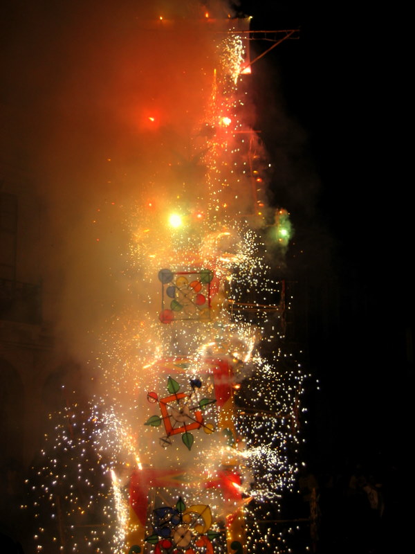 by becoming a mini-fireworks display and then igniting the bottom of the tower