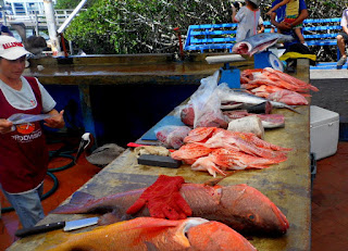 We had a pleasant final evening exchanging contact info and saying goodbye to new friends. There was quite a show in the waters beside the boat where lots of BIG sharks and sea lions competed for flying fish. Dinner, drinks and what?!?---karaoke (I did a mean Pretty Woman), then time to pack before bed.