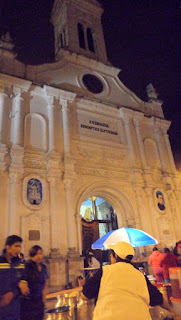 Cynthia and I happened to be downtown on Thursday at a going away party for friends who are moving to Spain. When we left the restaurant at around 10 PM we were stunned to find the streets absolutely packed with pedestrians. We'd never done the seven churches walk before and spontaneously decided, "What the heck, we're here--let's do it!"