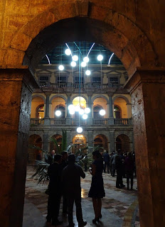 Looking into the empty auditorium we discovered a presentation had just taken place for members of the Judicial Council. Not sure what that organization is but we figured, what the hell, the concert's not happening and we're here, so let's have a glass of wine and do a bit of chatting ourselves. Which is exactly what we did.