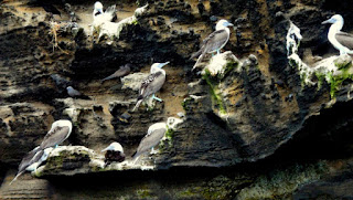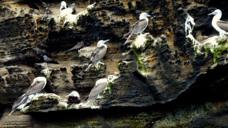 we spotted lots of blue footed boobies along with Nazca boobies and frigate birds.