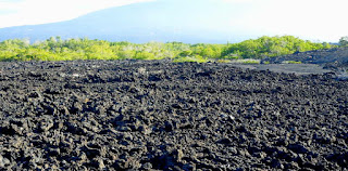 Mangrove trees are well established there, making the vegetation much greener than any place we'd been so far. But the contrasting black terrain made it seem like walking on another planet.